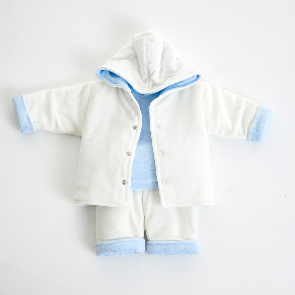 Σετ 3 τεμαχίων βελουτέ με επένδυση, αποτελείτε από παντελόνι, μπλούζα και μπουφανάκι ιδανικό για χειμώνα.
