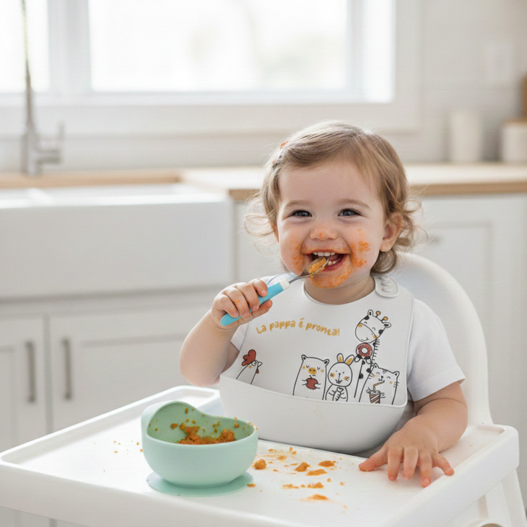 Η ώρα του φαγητού γίνεται η πιο ευχάριστη στιγμή της ημέρας με τη σαλιάρα σιλικόνης "Dinner Time". Με μια χαρούμενη παρέα από ζωάκια και καθαρό, μοντέρνο σχεδιασμό, αυτή η σαλιάρα αποτελεί τον απόλυτο συνδυασμό ασφάλειας και πρακτικότητας για μωρά από 4 μηνών και άνω.