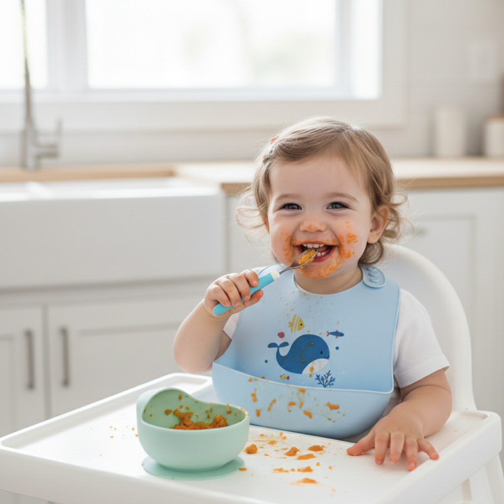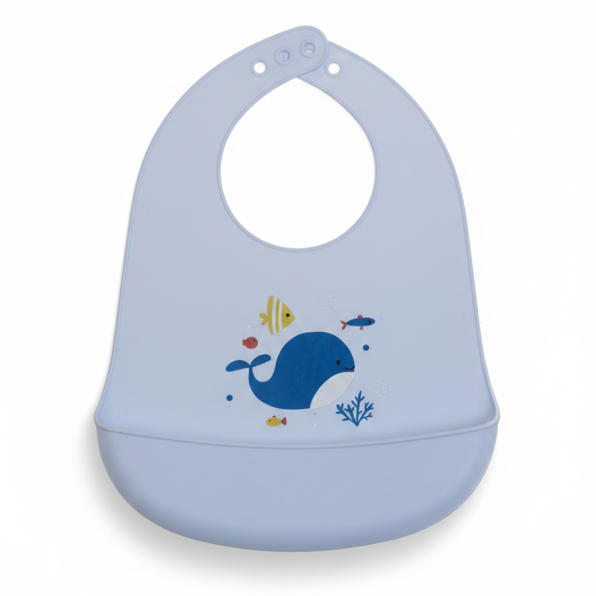 Εξερευνήστε τον κόσμο των γεύσεων με τη σαλιάρα σιλικόνης "Under the Sea" με το χαριτωμένο σχέδιο φάλαινας. Κατασκευασμένη από 100% σιλικόνη (BPA free), είναι η ιδανική επιλογή για μωρά από 4 μηνών και άνω που ξεκινούν τις πρώτες τους τροφές.