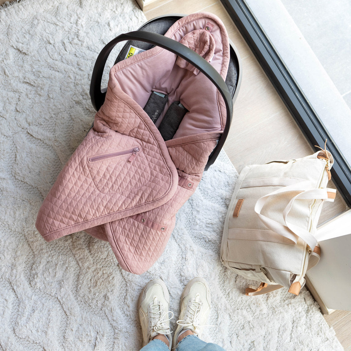 Η κουβέρτα τοποθετείτε απευθείας στο καθισματάκι ή το καρότσι και χάρη στο έξυπνο σύστημα ανοιγμάτων με φερμουάρ, είναι πολύ εύκολο να περάσετε τις ζώνες για να κλείσετε σωστά τη ζώνη ασφαλείας όσο το δυνατόν πιο κοντά στο σώμα του μωρού.