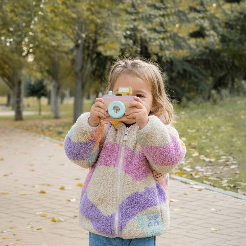 Το μικρό σας είναι έτοιμο να ανακαλύψει τον κόσμο μέσα από τον φακό της πιο διασκεδαστικής ξύλινης κάμερας. Αυτό το παιχνίδι μεταμορφώνει κάθε παιδί σε έναν δημιουργικό φωτογράφο, προσφέροντας ατελείωτες ώρες ευφάνταστου παιχνιδιού.