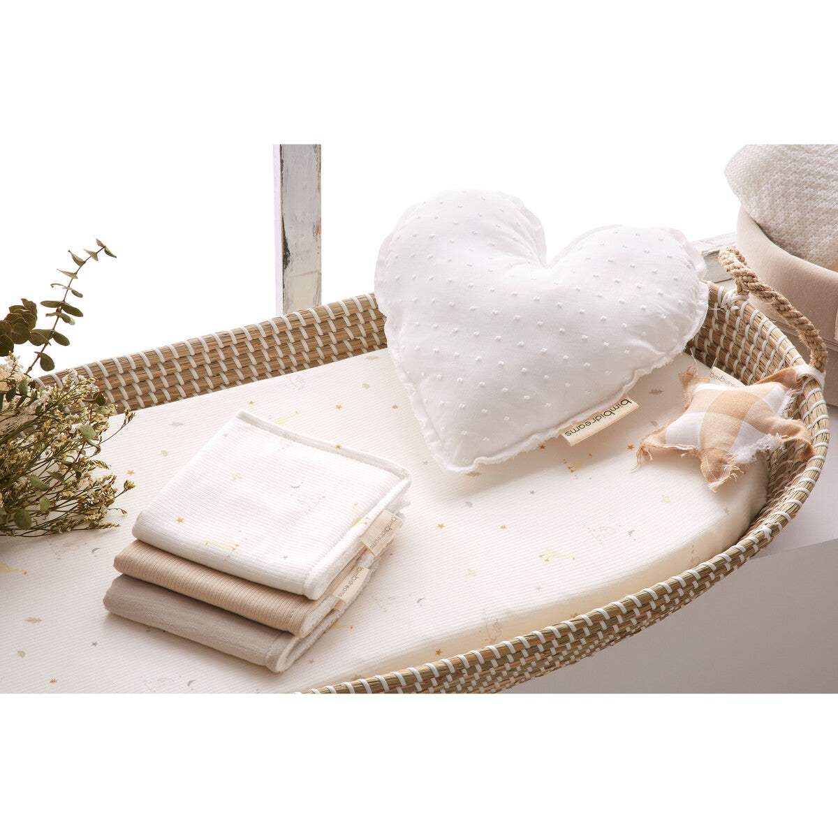 Αυτό το πρακτικό σετ πανάκια της σειράς Happy Forest από την Bimbidreams είναι ιδανικό για γεύματα και για να διατηρείτε το μαξιλάρι της κούνιας καθαρό. Είναι κατασκευασμένα από 50% βισκόζη από μπαμπού και 50% οργανικό βαμβάκι, προσφέροντας έτσι μια μοναδική αίσθηση απαλότητας και άνεσης, ιδανική για την ευαίσθητη επιδερμίδα. Η βισκόζη από μπαμπού έχει φυσικές αντιμικροβιακές ιδιότητες, ενώ το οργανικό βαμβάκι είναι αναπνεύσιμο και φιλικό προς το περιβάλλον.
