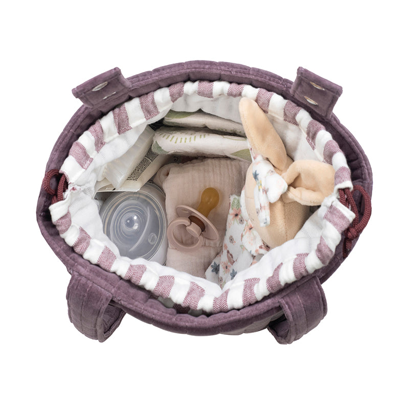 Διαθέτει λαβές με κουμπώματα για εύκολη τοποθέτηση στο καρότσι και μακρύ λουρί ώμου για άνετη μεταφορά. Με διαστάσεις 22×20×24 εκ., χωράει πάνες, μωρομάντηλα, μπιμπερό, παιχνίδια και προσωπικά είδη χωρίς να είναι ογκώδης.
