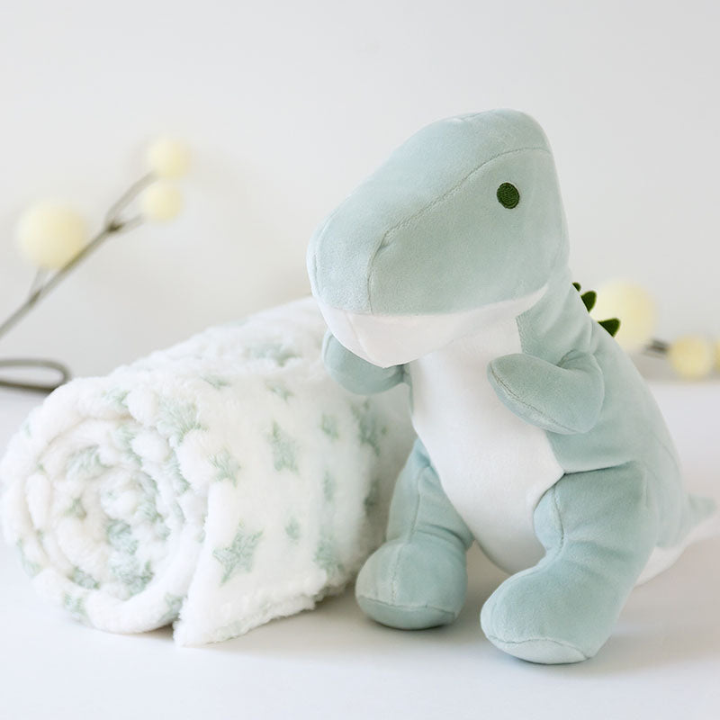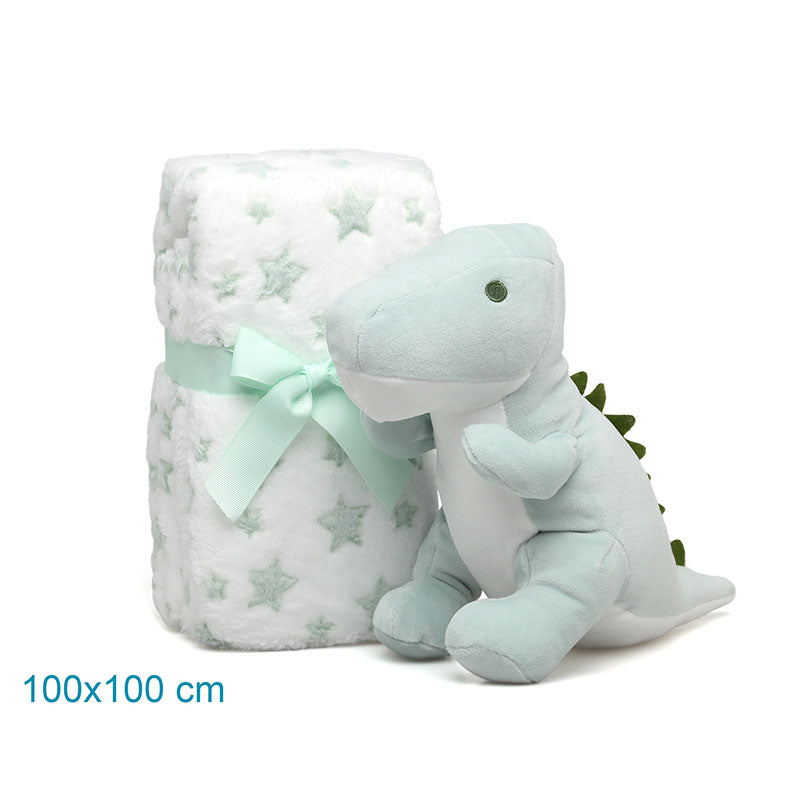 Αυτό το απαλό λούτρινο δεινοσαυράκι, μαζί με την κουβέρτα φλις με το χαριτωμένο μοτίβο αστεριών, είναι ο ιδανικός σύντροφος για τους πρώτους μήνες του μωρού. Τέλειο για αγκαλιές και παρηγοριά, είτε στο σπίτι, είτε στη βόλτα με το καρότσι, είτε την ώρα του ύπνου.