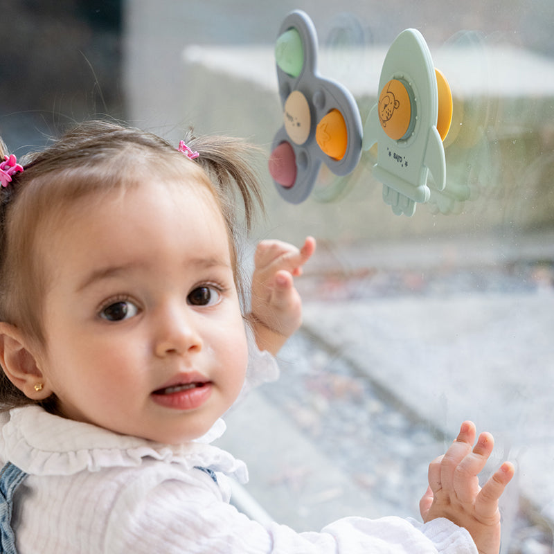 Με αυτό το σετ αισθητηριακών spinners, το μικρό σας θα ανακαλύψει έναν κόσμο κίνησης και υφών. Χάρη στην ισχυρή βεντούζα τους, στερεώνονται εύκολα σε οποιαδήποτε λεία επιφάνεια, όπως το δίσκο του καθίσματος φαγητού, το παράθυρο του αεροπλάνου ή την μπανιέρα, κάνοντας κάθε στιγμή διασκεδαστική!